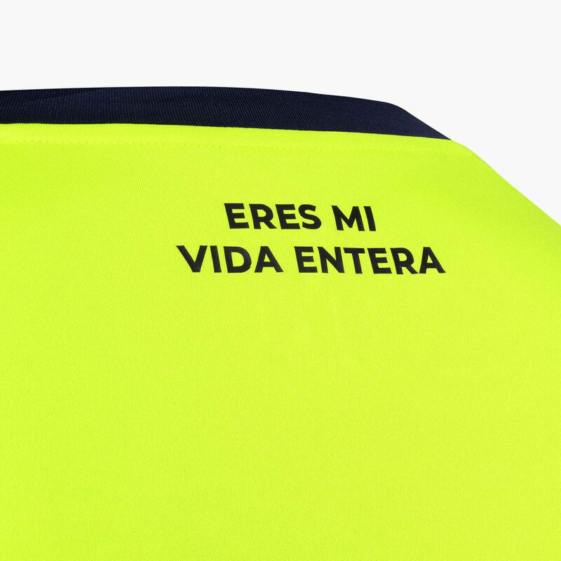 Revive la historia de la Universidad de Chile con esta camiseta adidas inspirada en las temporadas 2011-2012, donde el icónico color flúor marcó una época de gloria inolvidable. Su diseño audaz y vibrante refleja la rebeldía, el carácter y la fuerza de un equipo que dejó huella en América. El sign-off Eres mi vida entera en el cuello rinde homenaje a la pasión inquebrantable de los hinchas, que viven cada partido con intensidad y amor por los colores azul. Más que una prenda, esta camiseta es un símbolo de orgullo, compromiso y devoción.